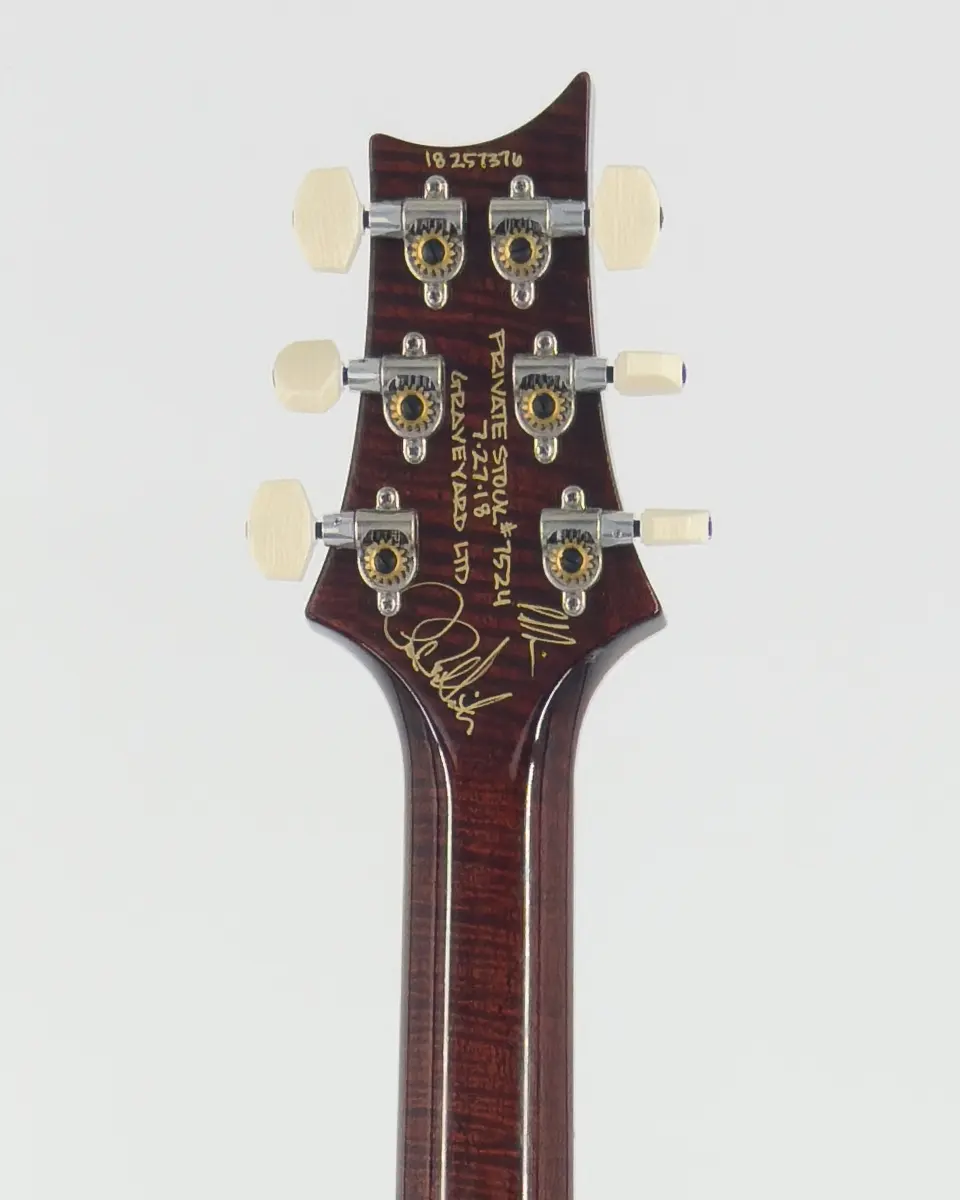 Der Name ist Programm: PRS hatte die Möglichkeit 140 Jahre alte Bäumen von einem Friedhof an der Ostküste der USA zu erwerben. Aus diesen atemberaubenden Hölzern wurden in makelloser Verarbeitung die Riegelahorndecken der Graveyard Modelle hergestellt. Es handelt sich um Private Stock-Qualitätsdecken mit mittelgroßer bis großer Wölbung und einer außergewöhnlichen Flamme.